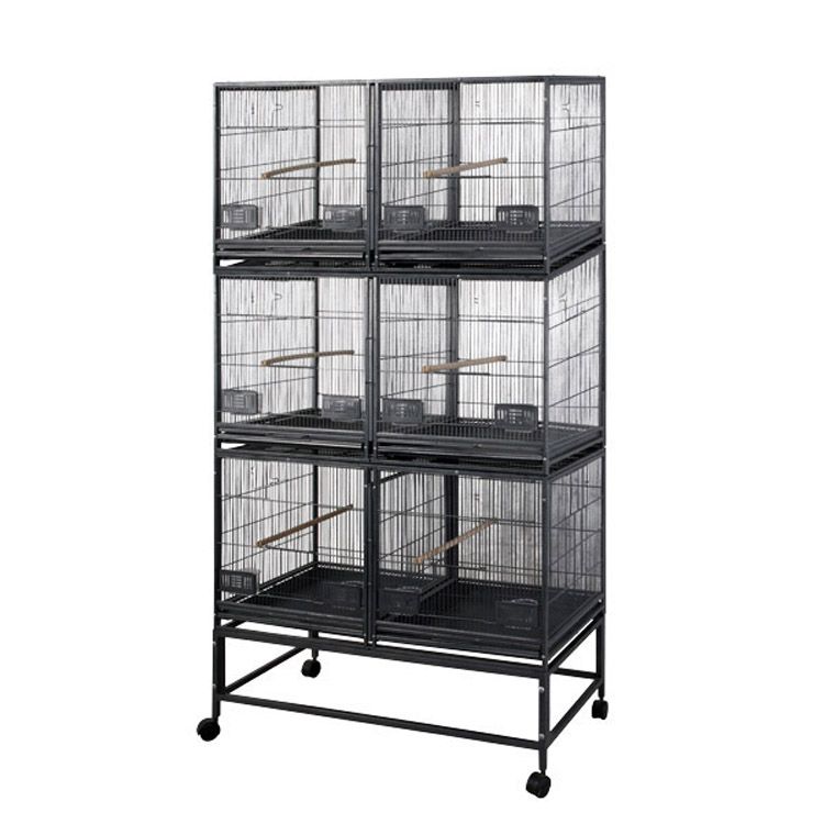 A & E Cage Company 6-Unit Breeder Bird Cage A bird breeder's dream cage! You have the option to use as 3 medium cages or 6 small cages. Each individual cage comes with its own front door, plastic waste tray, perch, and 2 plastic feeding stations. Features:Bird proof front door and feeder door locks. 3 removable dividers. Can be used as 3 cages or 6. 6 slide out metal grills and plastic trays. Horizontal side bars, vertical bars front and back. Includes 6 wood perches and 12 plastic feeding stations. 6 large front doors for easy access. 4 easy rolling casters. Knocks … Read more