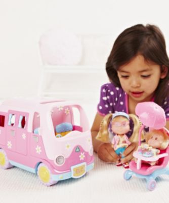 Car sold separately. Groovy camper that opens up with working headlamps, fun sounds, and a cute Summer doll. The Rosie's World Camper Van is a charming retro motor home and comes with a lovely Summer doll to drive it around. The doors and roof open up so it's easy for Summer to move around her caravan, which has working headlamps, a mini sink unit and a bed. There's also a cooker that boils and sizzles, a steering wheel that beeps and chugs, and music in the front seat. Quick facts: Fantastic camper van full of cute details Music, sounds and flashing headlights Comes … Read more