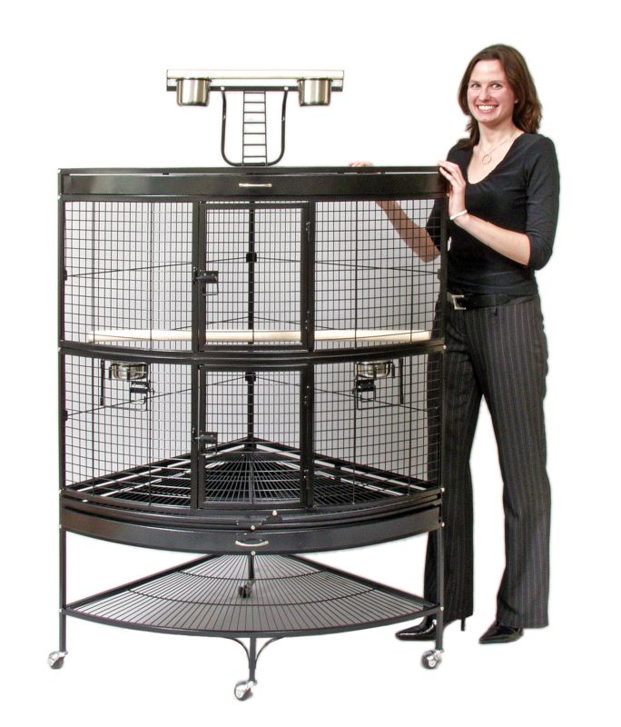 Large Corner Cage in Black provides plenty of living space for birds and a space-saving corner fit for owners! A cage top playstand adds to the living area while a bottom shelf provides additional storage space. The Prevue 3158BLK Black Corner Cage provides a generous living space for birds and a space-saving corner fit for owners. With a fun cage-top playpen 2 front doors and top and bottom pull-out drawers for easy cleaning taking care of your pet will be a breeze. The sturdy cage stand base features a bottom storage shelf and easy-rolling casters. The cage also includes … Read more