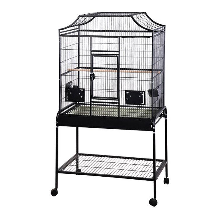 A & E Cage Company Medium Elegant Bird Cage A cage made for royalty. Pamper your beautiful bird in this majestic avian home. Sophisticated, yet practical and functional. Features:Bird proof front door and feeder door locks. Horizontal side bars. Vertical bars front and back. Front door safety latch. 3 swing-out feeder doors. Includes 3 stainless steel feeder cups and 2 wood perches. Large front door for easy access. Slide-out grill and tray for easy cleaning. 4 easy rolling casters. Knocks down for compact storage. Non-toxic, durable and safe powder coated finish … Read more